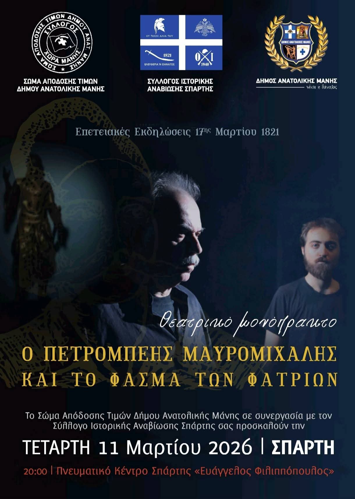 Ο μονόλογος «Ο Πετρόμπεης Μαυρομιχάλης και το φάσμα των φατριών» στο Πνευματικό Κέντρο «Ευάγγελος Φιλιππόπουλος»